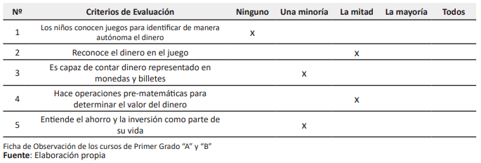 De acuerdo a las terminaciones presentadas en el presente estudio, se detectó en el diagnóstico que los docentes desconocen estrategias para enseñar la pre-matemática y la educación financiera a los niños, debido a que es un tema novedoso que no se ha tratado como un conocimiento establecido dentro del pensum educativo.