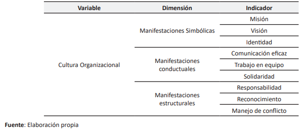 Otra variable inmersa en la cultura organizacional se refiere a las manifestaciones conductuales corresponden al lenguaje, el comportamiento no verbal, el ritual y las distintas formas de interacción en la organización (Segredo et al., 2017). Significa que, para cimentar los valores y las creencias, la cultura de una organización, se requiere de un proceso de comunicación la cual es necesaria en la creación de la cultura, en su transmisión y consolidación, siendo dada atención de forma significativa en los modelos más modernos de gestión organizacional (Azuaje, 2008).