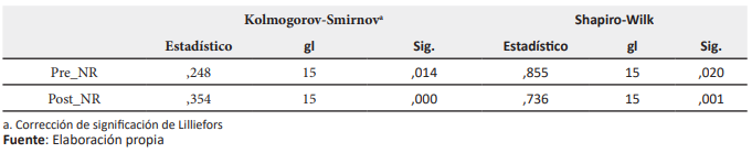 Primero de efectuar la prueba de la hipótesis se hizo una prueba de normalidad, a través de Shapiro Wilk. La hipótesis que se ejecutó fue: