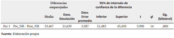 Se observa que en la prueba T-student, se obtuvo un nivel de significancia de 0.000, este resultado indica que la hipótesis nula se rechaza y por ende se interpreta que el nivel de riesgo se reducirá en la empresa Molino Agroindustria Alexander S.A.C., gracias a la implementación del Sistema de Gestión de Seguridad y Salud en el Trabajo.