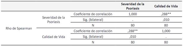 la psoriasis está relacionada significativamente (0,01) con la calidad de vida