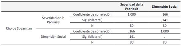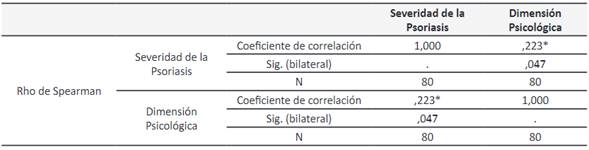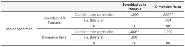 severidad de la psoriasis está relacionada significativamente con la dimensión